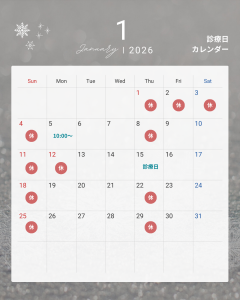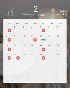 2月は11日、23日が祝日で休みのため、12日を診療日といたします。