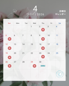 4月は29日祝日を休診とする代わりに、20日を振り替え診療日といたします。