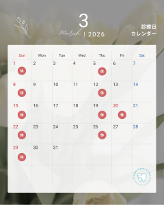 3月は祝日の振り替え診療は行わず、19日、20日ともに休診とさせていただきます。